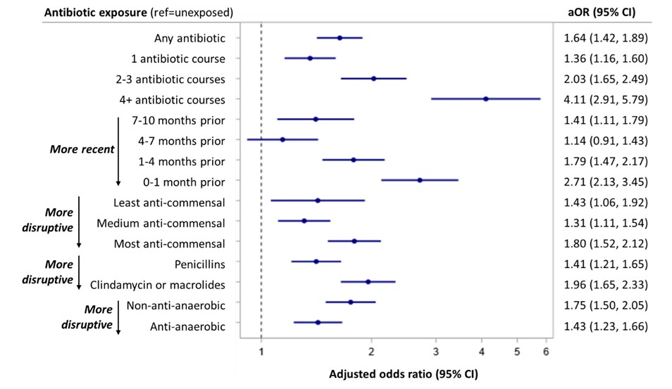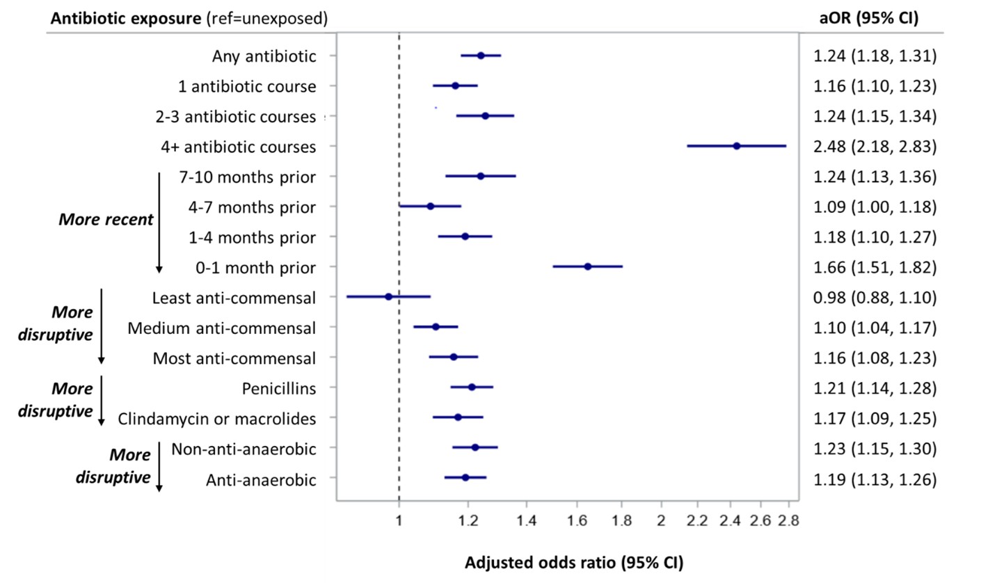 Figure 2. Associations between antibiotic exposure and new diagnosis of spondyloarthritis