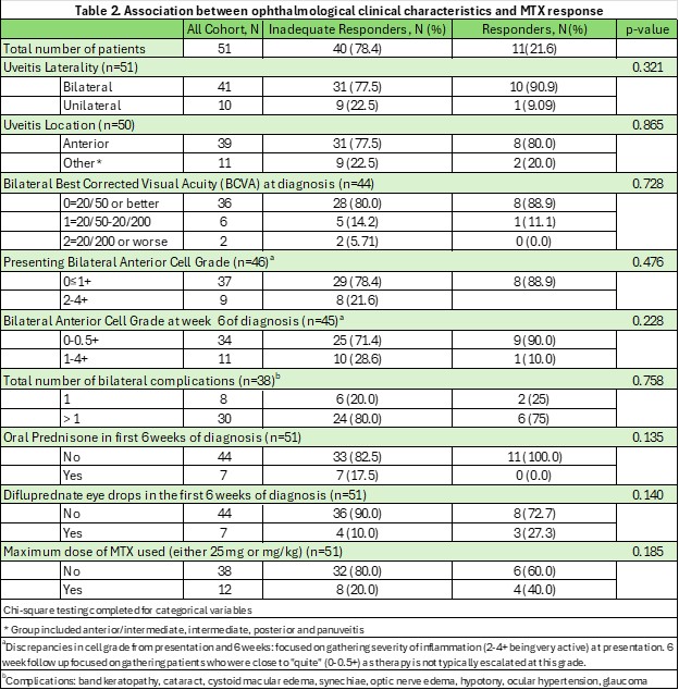 Table 2. Association between ophthalmological clinical characteristics and MTX response