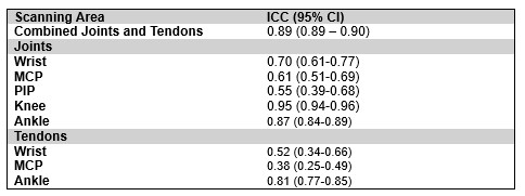 Scanning Protocol Reliability: ICC for Joints and Tendons