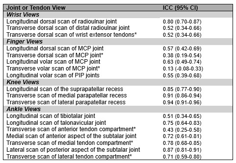 Scanning Protocol Reliability: ICC for Specific Joint and Tendon Views