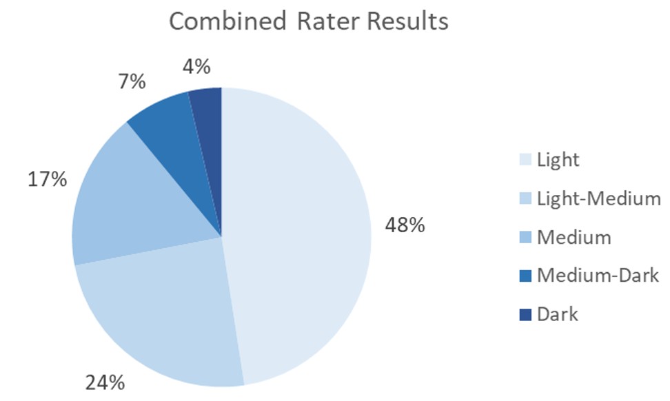 72% of the images were rated as light or light medium and approximately one in ten (11%) were rated as medium-dark or dark.